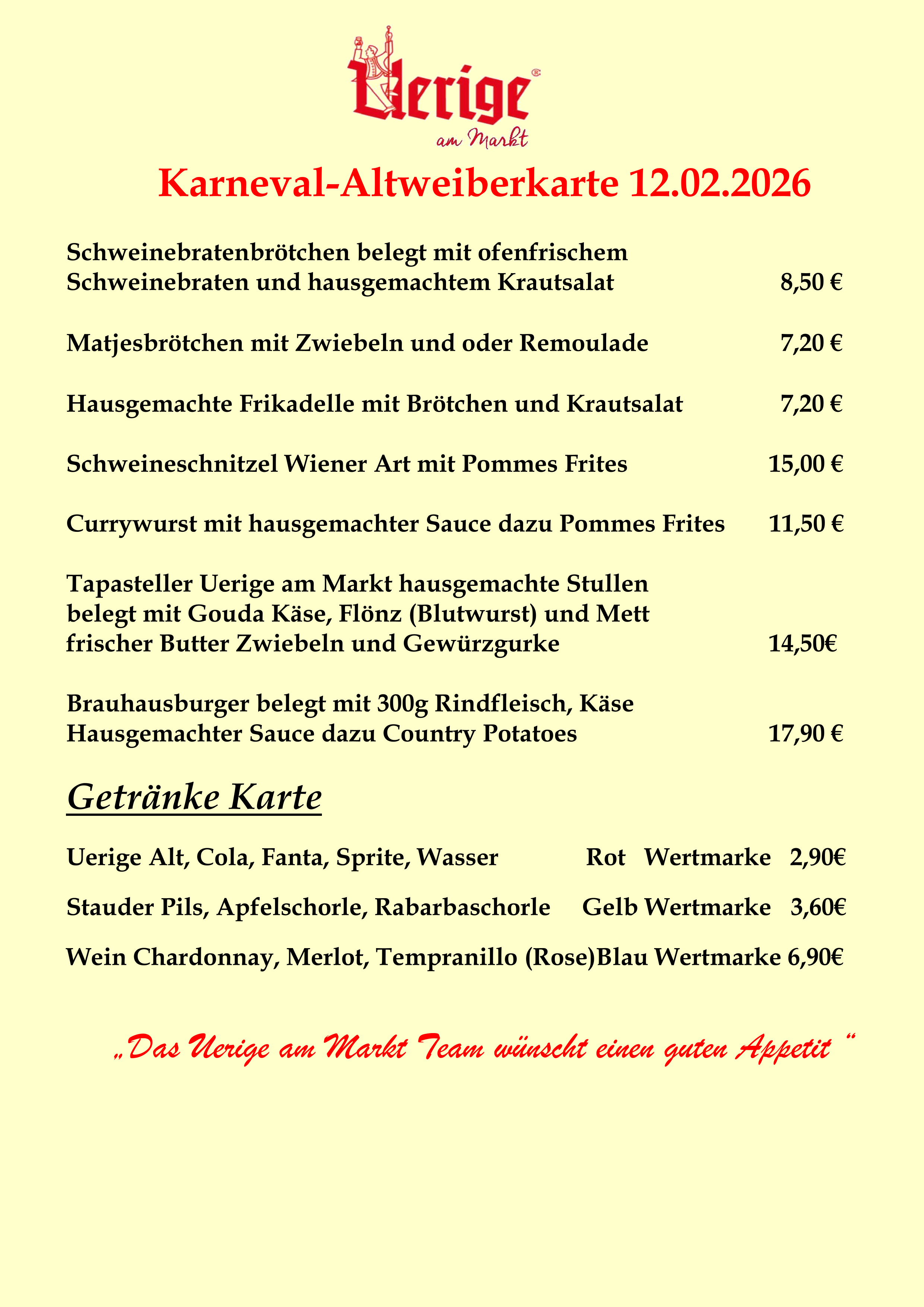 February 10, 2026 Uerige am Markt Karneval-Altweiberkarte 12.02.2026 February 10, 2026 Uerige am Markt Uerige am Markt
