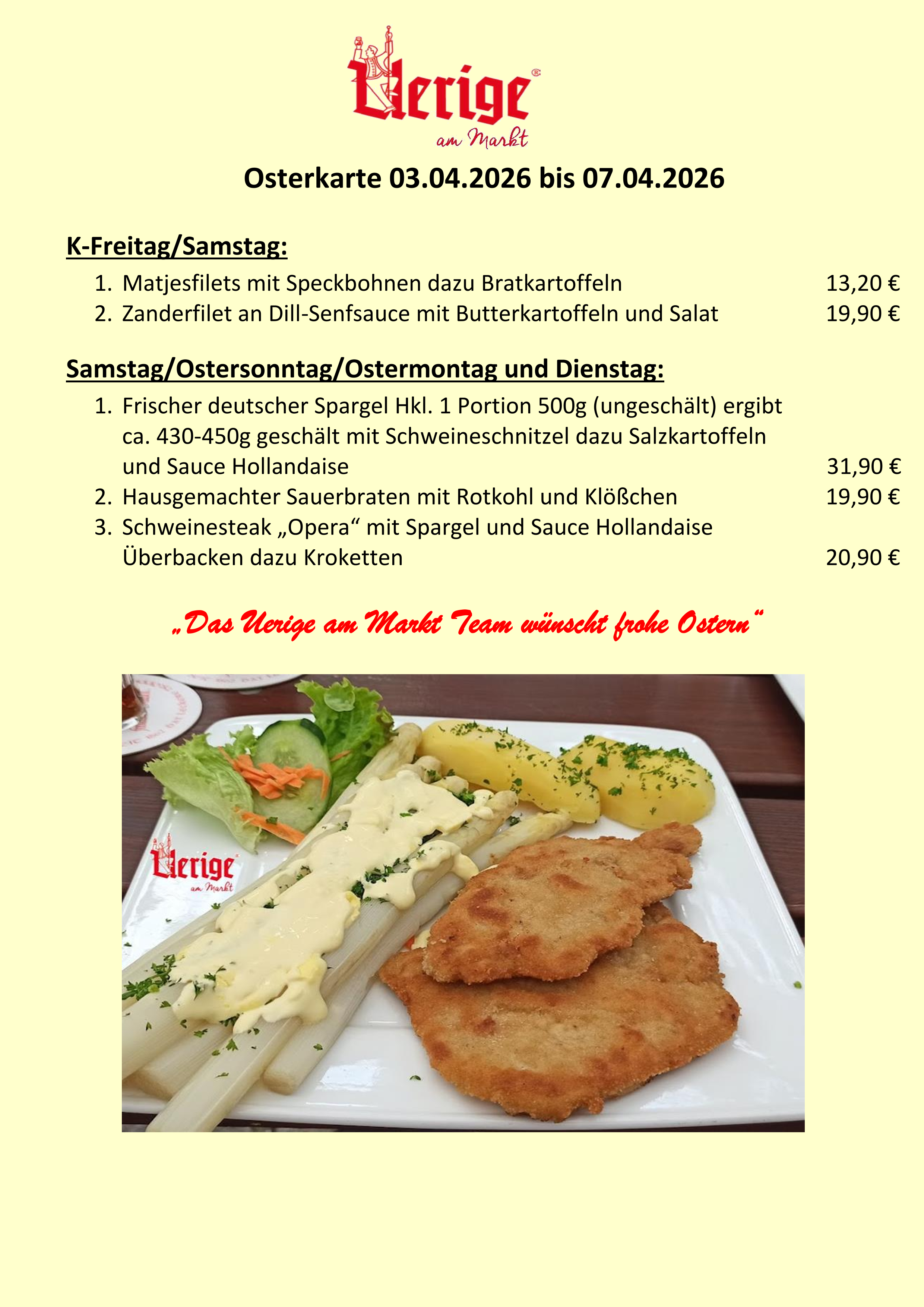 March 31, 2026 Uerige am Markt Osterkarte 03.04-07.04.2026 das Team wünscht Euch frohe Ostern March 31, 2026 Uerige am Markt Uerige am Markt